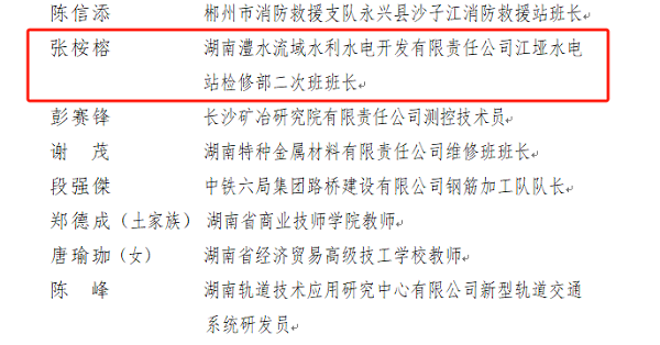 公司江埡水電站張桉榕同志榮獲“湘直工匠”稱號(hào)